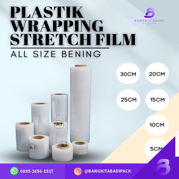 Plastik Wrapping memiliki ukuran yang bervariasi, mulai dari ketebalan 8 sampai dengan 20 mikron, dengan variasi panjang sesuai dengan kebutuhan masing-masing pengguna.